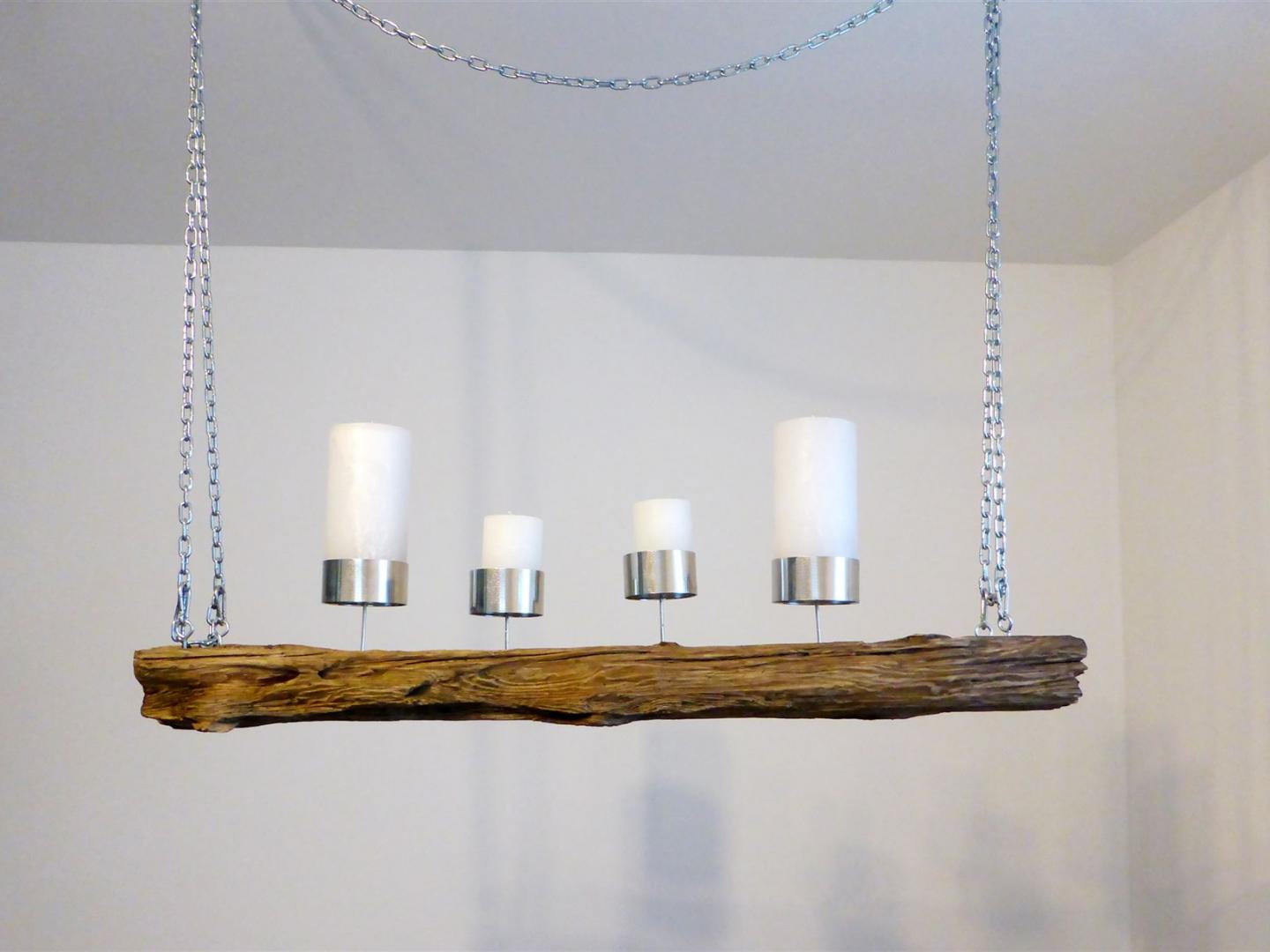 Das Holz des Deckenkerzenleuchters ist altes Schwemmholz, dass durch die Macht der Elemente im Laufe der Zeit so geformt wurde.