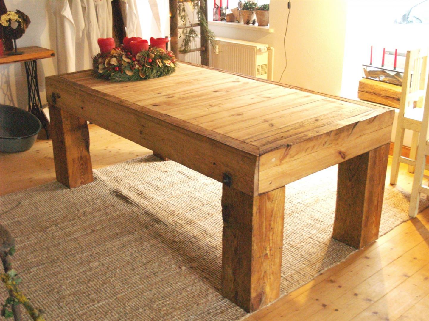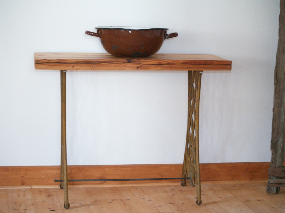 ...und jetzt ist es ein bezaubernder Tisch. 300 Jahre hat das Kiefernholz auf dem Buckel. Wir haben die Beine abnehmbar gestaltet, um einen Transport zu erleichtern.